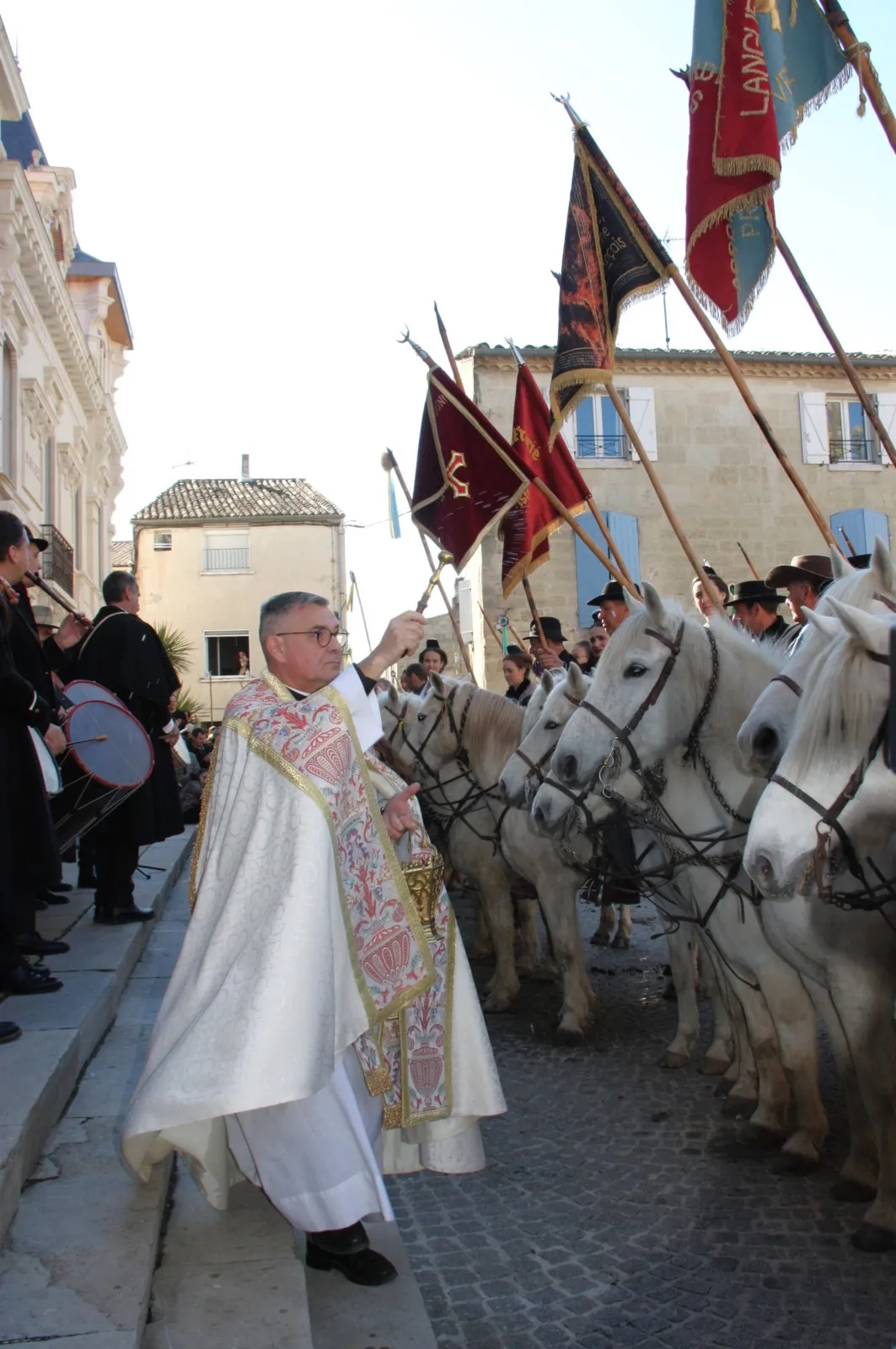 Procession through the streets of the village of Saint-Laurent-d'Aigouze